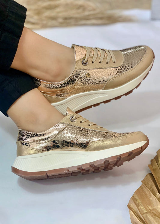 Descuento $40.000Sneakers Cuero Verona Dorado